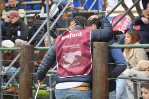 En la jura de terneros Braford, la calidad no cedió. Lotes de machos jóvenes con mucha precocidad y cualidades carniceras, pasaron por la pista de conjuntos bajo la mirada del público presente en las tribunas, que con el correr de las horas ya mostraban mayor ocupación.