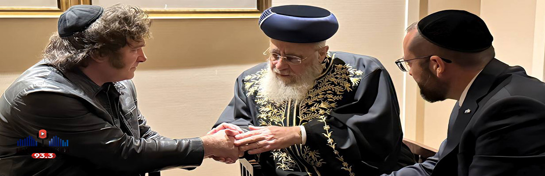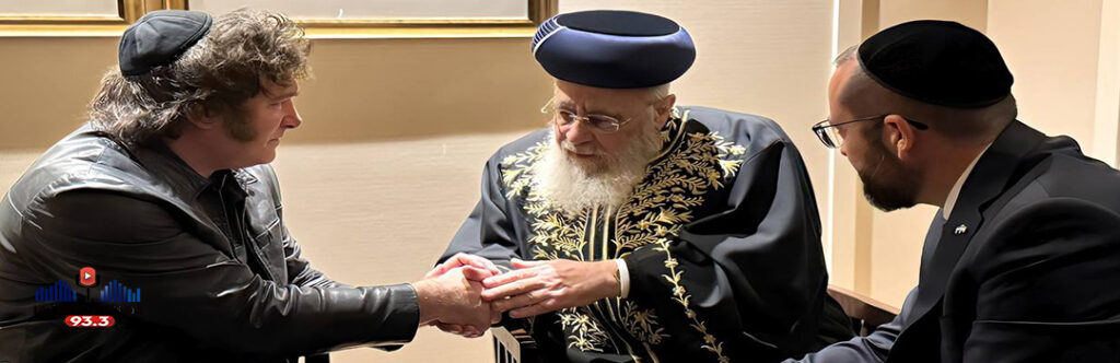 El presidente Javier Milei mantuvo hoy en Jerusalén un encuentro con los rabinos principales de Israel, Rabino Itzjak Yosef y Rabino David Lau, acompañado por el embajador designado en Israel, rabino Axel Wahnish, en el marco de la gira internacional que lleva adelante.