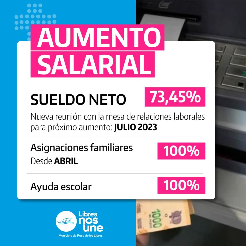En las últimas horas, la Municipalidad de Paso de los Libres acordó junto a la mesa sindical un aumento para todos los trabajadores municipales del 73,46% desde febrero. La medida busca mejorar los ingresos de los agentes y las condiciones laborales. Además se acordaron otros aumentos paulatinos en los meses siguientes.